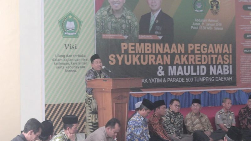 Pontianak, BerkatnewsTV. Sekjen Kemenag RI M. Nurkholis Setiawan mengingatkan para pegawai Kementerian Agama agar mampu mengenali masalah yang ada di lingkungan kerjanya masing-masing. Hal itu disampaikannya usai gelaran Syukuran Akreditasi dan Maulid Nabi di Aula Syech Abdurrani Mahmud IAIN Pontianak, Jum’at (11/1) siang.