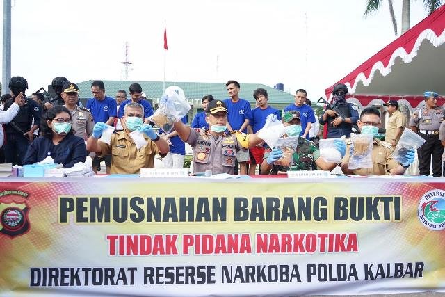 Kapolda Kalbar mengatakan pemusnahan narkoba ini merupakan tindak lanjut press conference pengungkapan tindak pidana narkoba yang diselenggarakan pada 21 Januari 2019 di Balai Kemitraan Mapolda Kalbar, kemarin.