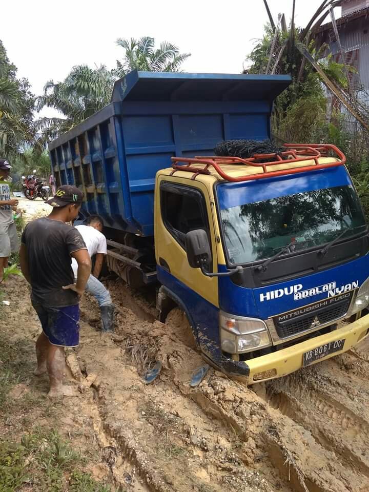 “Kalau hujan jalan itu semakin parah dan sulit dilewati. Kubangannya besar persis seperti kubangan hewan, ” kata H. Sahedan diwawancarai, Selasa (12/2).