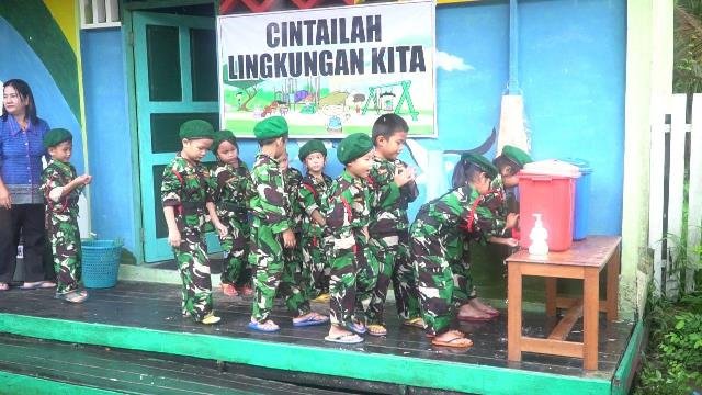 Dan menurutnya pola hidup bersih dan hidup sehat harus diajarkan sejak dini, agar tidak menghambat tumbuh kembang anak nantinya. Karena itu setelah mereka membuang sampah diajarkan mencuci tangan dengan sabun