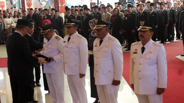 Pontianak, BerkatnwsTV. Gubernur Kalbar Sutarmidji melantik dan mengambil sumpah jabatan dua pasang kepala daerah periode 2019 – 2024 di pendopo gubernur pada Minggu (17/2).