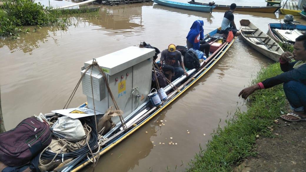 “Semua kita kerjakan secara manual, yang terberat adalah mengangkat trafo ke perahu dan menaikkannya kembali ke darat. Perlu kehati-hatian saat melakukannya, jika kurang teliti salah-salah bisa tenggelam ke sungai,” ucapnya.