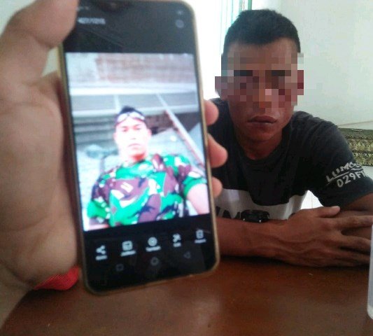 foto dengan mengenakan seragam TNI, Budi mengaku sebagai intel Satgas Pamtas Yonif Mekanis 643/Wns untuk memacari Lidia Kalid (24). Foto: Ist