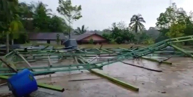 “Iya. Itu atap sekolahnya berterbangan. Ada juga sengnya yang sangkut di pohon. Tapi setahu saya tidak sampai menimpa rumah warga karena sekolah itu terbilang tidak terlalu dekat dengan pemukiman penduduk,” tuturya yang dihubungi melalui ponsel.(pek)